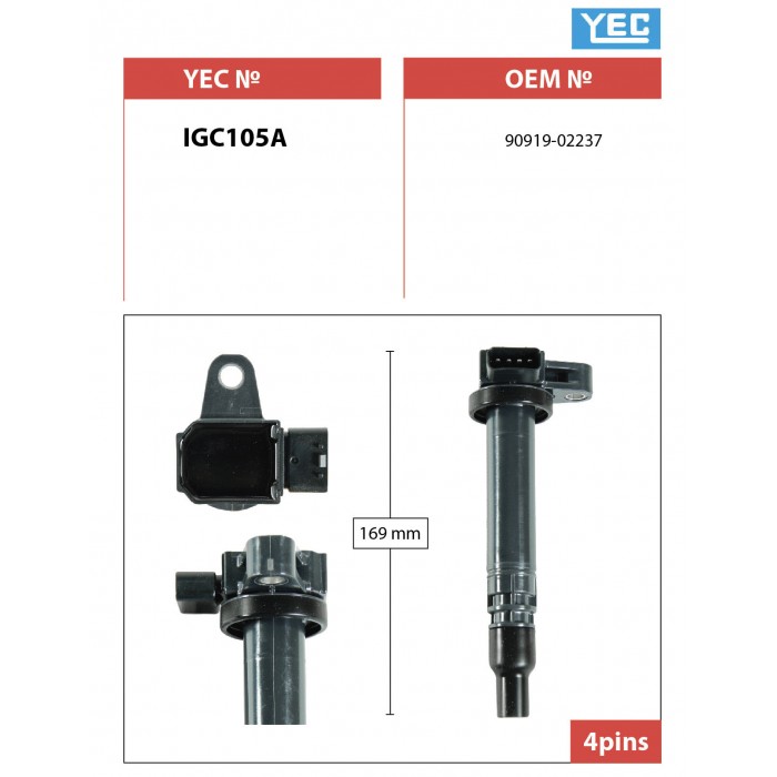 Катушка зажигания / YEC для Toyota Land Cruiser Prado 2002-2004 Hilux Surf 1995-2002 Hiace 1998-2006 RZJ12# RZN18#; IGC105A; (TG-90919-02237 ) ST9091902237