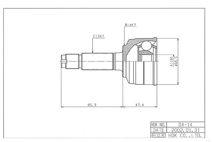 ШРУС наружный /передний правый /левый HDK для DUET 1998- M100; 19*47*24; DA-014; (DA-E014 LG-DH-14 TG2814) 4342097207 4342097223 4342097201