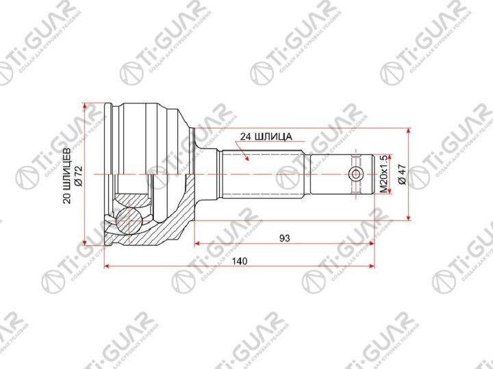 ШРУС наружный /передний левый /правый /TI-GUAR для Daihatsu YRV 2000- Duet 2000-2004 M201 K3VE 1.3L; 20*47*24; TG-2825; (DA-025) DA025 0910025 4341097403