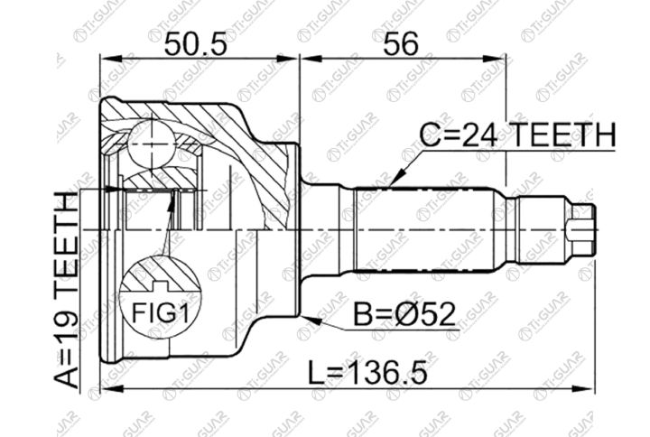 ШРУС наружный /TI-GUAR для Mazda Demio 1996-, Ford Festiva 1989- /19*52*24; TG-6814; (MAE014A TG6814Z44 0510014A44) MA014 MAE014A 0510014A44